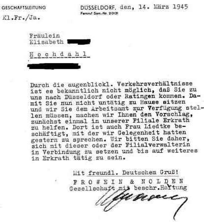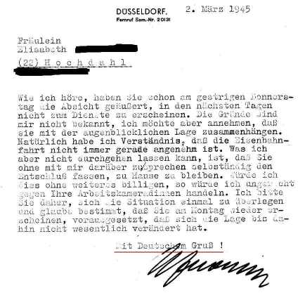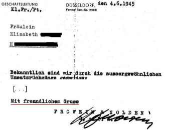 Aber nicht mal vierzehn Tage später (die Amerikaner stehen in Düsseldorf-Oberkassel) sind schon Änderungen spürbar. Der "Deutsche Gruß" wandelt sich zum "freundl. Deutschem Gruß":