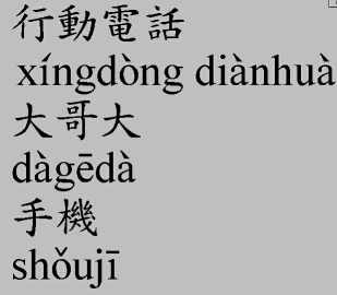 ![]() [dage = Bruder (ältester); Bandenführer; dageda = Pate (einer Bande), zelluläres Telefon] (aus http://www.zhongwen.com Hariolf Betz
